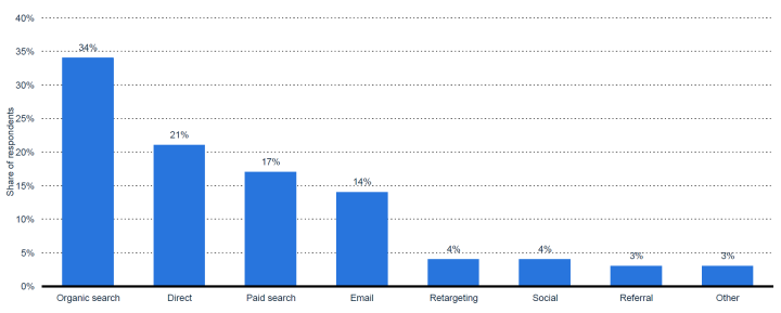 Developing a solid digital strategy, to include working with digital marketing service providers, is key to optimizing your overseas online customer acquisition. In the below graph we see international survey respondents primarily use their website for digital marketing, with social media as a secondary preferred channel through which their website URL (primary preference) is promoted. With a website serving as your digital marketing “base of operations”, the question of how best to drive website traffic towards a sale becomes the next hurdle.